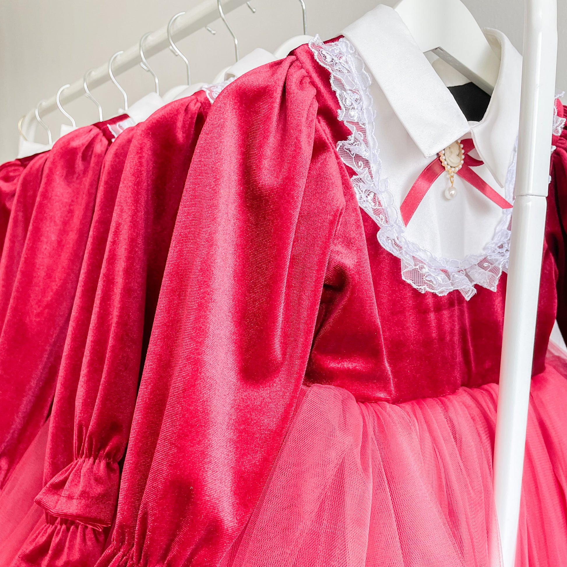 Girls Velvet and Tulle Party Dress | Red